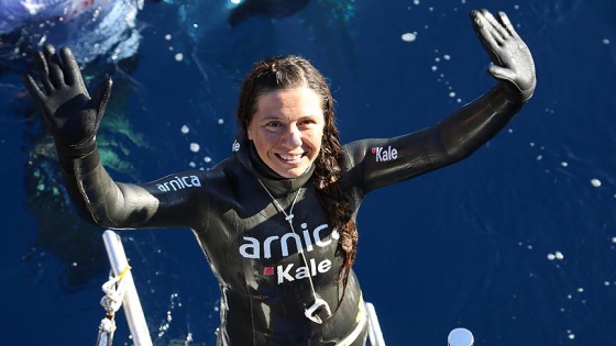 Derya Can, dün de paletsiz değişken ağırlık ip destekli serbest dalış kategorisinde 94 metreye inerek dünya rekoru kırmıştı.