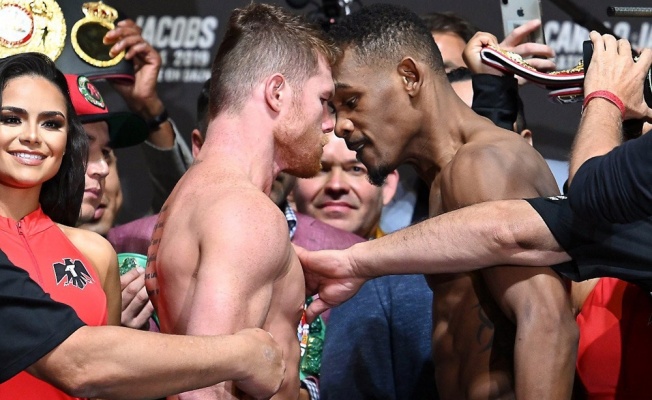 ABD’nin Las Vegas kentinde bulunan T-Mobile Arena’da gerçekleşecek Canelo-Daniel Jacobs unvan birleştirme maçı öncesi tartıya çıkan iki boksör, birbirine girdi.