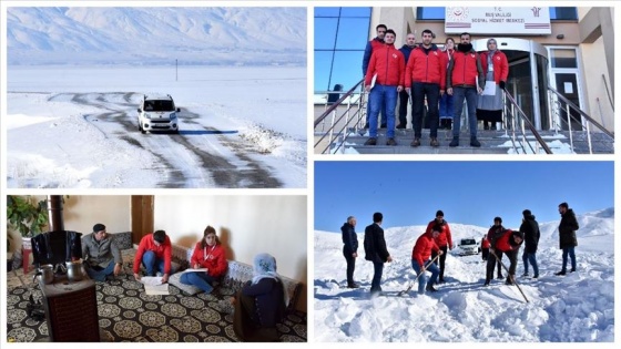 Kardan kapanan yolu kürekle temizleyerek ilerleyebildiklerini anlatan Seyhan, "Vatandaşların, devlet kurumlarına gelmeden, sıkıntılarını ve dertlerini dinleyerek hangi modellerden faydalanması gerektiğini anlatıyoruz. Bunları yaparken zorluklarla karşılaşıyoruz. Köye geldiğimizde fırtına yolu kapatmıştı. Bu yolları aşa aşa vatandaşlara ulaştık, sorunlarını tespit ettik. Buna göre yönlendirmemizi yapıp ailelere hizmetimizi sunuyoruz." diye konuştu.