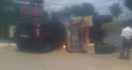 Kaza, Hayrabolu yolu üzeri Hacıevhat Mahallesinde meydana geldi. Güvenlik kamerasına yansıyan kazada, akaryakıt istasyonuna mazot almayan giren 75 yaşındaki İ.E yönetimindeki traktör, Y.T'nin kullandığı 59 LB 836 plakalı araçla çarpışarak devrildi.
