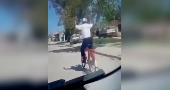 Araçla giden vatandaşların cep telefonu ile çektiği görüntülerde Adanalı Selçuk, ismiyle tanınan kişinin bisiklet üzerinde kulaklıkla müzik dinlediği ve dinlediği müziğe kendisini kaptırıp ilginç hareketler yapması görülüyor.