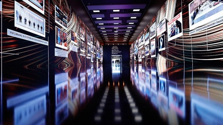 Antalya Diplomasi Forumu'nun (ADF) gerçekleştirildiği kongre merkezinde, 397 görsel eserin sergilendiği "Diplomasi Tüneli" oluşturuldu.