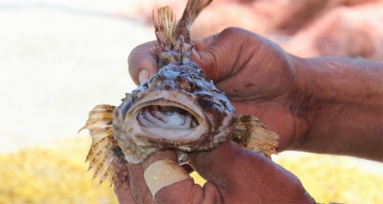Yakaladıkları ilginç balık hakkında açıklamalarda bulunan balıkçı Hayati Kadir Van, “Ağlarımızı akşamdan kaya başlarına seriyoruz. Genelde Karadenizliler bu balığı yer. İskorpitleri ayıklayıp, otellere gönderiyoruz. Bu balığı günübirlik balık ayıklayan vatandaşlarımız pek bilmez, ayıklayamaz. Halkımız bunları zehirli balık olarak bilir. Genelde bu balığı yenilmez sanırlar. İskorpit çok lezzetli bir balıktır. Çok güzel çorbası ve tavası olur. İskorpitin eti çoğu balıktan da lezzetlidir. Kilosunu 30 liradan veriyoruz. İskorpit, tutmasını bilmezseniz iğnelerinden çarpar. Yanlış yerden tutarsanız da şişik ve alerji yapar” dedi.