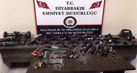Kaynartepe Mahallesi'nde bulunan ikamette yapılan aramada; 6 adet namlusu açılmış, diğerleri üzerinde düzeltme, kesme, oyma gibi çeşitli işlemler yapılmış olan toplam 25 adet tabanca, 25 adet şarjör, 60 adet fişek, 105 adet ses fişeği, 1 adet kesici alet, çeşitli ebatlarda kurusıkı tabancaların uçlarını açmak için kullanılan aletler ele geçirildi.