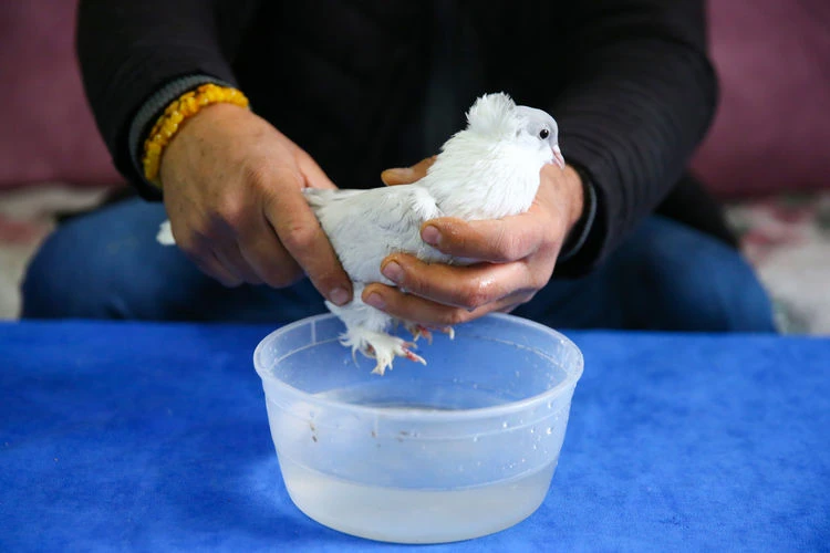 Sirkeli suyla ayaklarına bakım yapılan, kanatlarının kırılmaması için de kontrolleri gerçekleştirilen güvercinlere, fındık, fıstık ve bademin yanı sıra çeşitli yemler veriliyor.