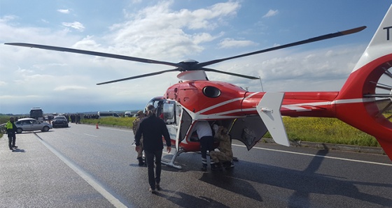 Kazanın meydana geldiği yolun güvenlik güçlerince ulaşıma kapatılmasının ardından ambulans helikopter yola indi.