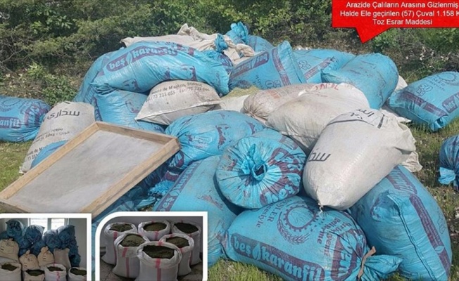 Lice'nin Oyuklu ve Kabakaya köyleri arasında kalan dağlık ve ormanlık arazide 4 ayrı noktaya gizlenmiş 57 çuval içinde bir ton 158 kilogram esrar ele geçirildi.