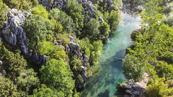Kahramanmaraş'ın Andırın ilçesindeki kanyon, turkuaz rengindeki suyu ve zengin florasıyla seyri doyumsuz manzara oluşturuyor.