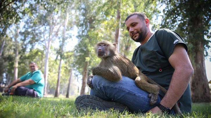 Doğa parkı personelinin baktığı babun 'Nisan' 15 aylık oldu