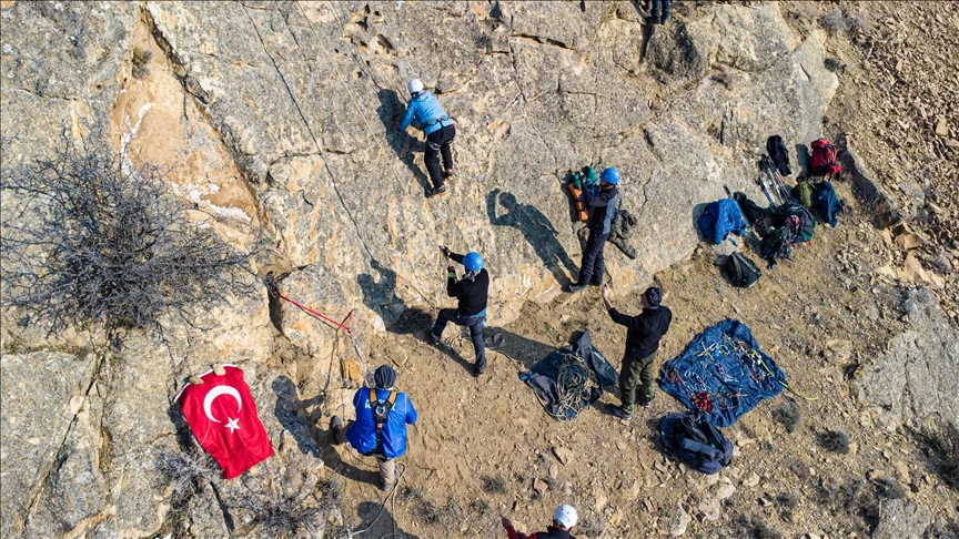 Tuzluca ilçesinde bulunan Kızıldağ'daki kayalıklarda çevre illerden 21 kişinin katılımıyla düzenlenen eğitimlerde, 7 gün boyunca doğa tutkunlarına dağcılıkla ilgili teorik ve pratik dersler verilecek.