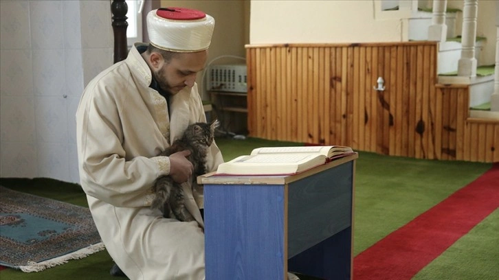 Yılmaz'ın, "Zeytin" adını verdiği kediye caminin kapılarını açması, Kur'an-ı Kerim okurken dahi ona şefkat göstermesi, görenlerin dikkatini çekiyor.