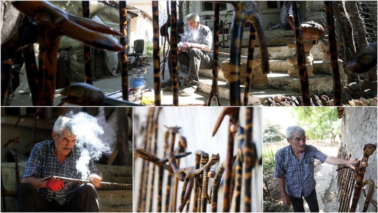 Kırklareli'nde yaşayan 71 yaşındaki Cemal Olt, doğadan topladığı ağaç dallarını, çeşitli hayvan figürleri işleyerek bastona dönüştürüyor.