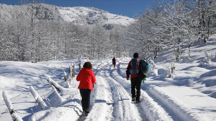 Trabzon'da bir grup doğasever, kar altında kalan Tonya ilçesine bağlı Kadıralak Yaylası'na yürüyüş düzenledi.