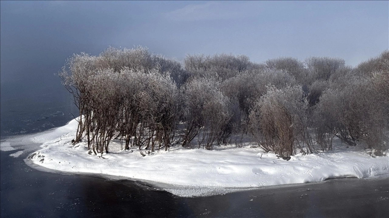 Soğukların etkisiyle akarsuların yüzeyi buz tutarken, ağaçlar kırağı ile kaplandı.
