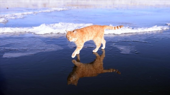 Son günlerde havaların soğumasıyla yüzeyinin büyük bölümü donan Çıldır Gölü sahilindeki balık lokantasının müdavimi "Mırmır" ile "Mira" gölün maskotu haline geldi.