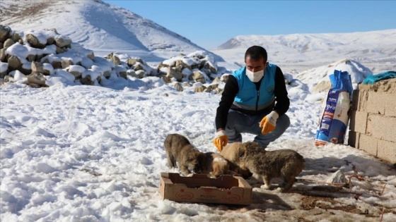 Kentin çeşitli noktalarında belirlenen alanlara kedi ile köpekler için et ve mama dağıtan ekipler, yaban hayvanları ile kuşlar için de kırsal bölgelere ve soğuk hava nedeniyle kısmen donan Sıhke Gölü'ne yem bıraktı.