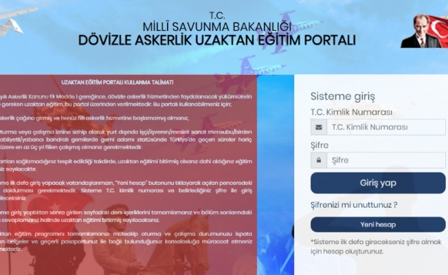 Konuyla ilgili bakanlıktan yapılan yazılı açıklamada, “Yabancı ülkelerde yaşayan yükümlülerin dövizle askerlik hizmeti uygulamasından yararlanma şartlarından birisi olan ‘uzaktan eğitim’ ile ilgili internet sitesi 11 Aralık 2018 tarihinde hizmete açılmıştır. Dövizle askerlik hizmetinden faydalanacak yükümlüler https://dovizle.msb.gov.tr adresinden ‘T.C. Millî Savunma Bakanlığı Dövizle Askerlik Uzaktan Eğitim Portalı’ adlı internet sitesine giriş yapabileceklerdir. Bu siteye girerek uzaktan eğitim programını tamamlayan yükümlü vatandaşlarımız; kanunda belirtilen belgelerle birlikte bağlı bulundukları konsolosluk ve/veya Büyükelçiliklere müracaat ederek dövizle askerlik hizmetini tamamlamış olacaklardır” denildi.