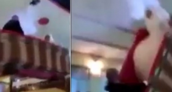 Düğünde salonuna kayıkla gelen gelin ve damadın yere çakılma görüntülerini izleyenler hayrete düştü. Görüntülerde gelin ve damat salona havadan iplerle bağlanmış bir kayıkla indiriliyor. Bir anda olan oluyor ve kayığın ön kısmı aşağı doğru kayıyor.Gelin ve damat ise salonun ortasına yuvarlanıyor.O anları cep kamerasıyla kaydedenler ise gelin ve damada yardıma koşuyor.