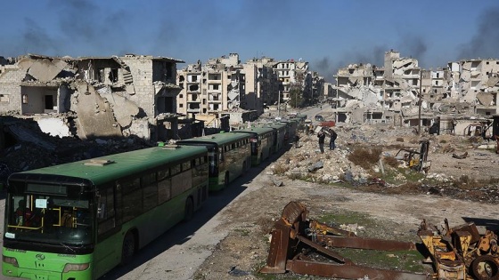 Suriye'de BeÅŸÅŸar Esed rejimi ordusu ve rejim yanlısı yabancı terörist grupların kuÅŸatmasındaki doÄŸu Halep’ten çıkan tahliye konvoylarının, Türkiye sınırında muhaliflerin kontrolündeki İdlib iline varması, dünya basınına Anadolu Ajansı’nın (AA) fotoÄŸraflarıyla yansıdı.