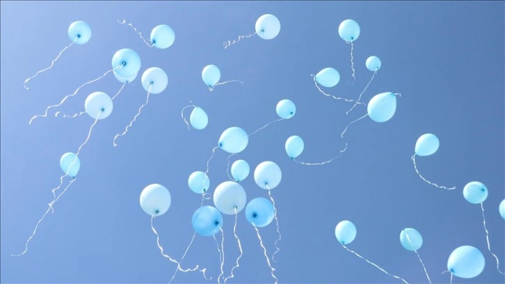 Katılımcılar gökyüzüne yüzlerce mavi balon bıraktı, kumaşa renkli el baskısı yaptı.