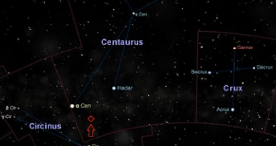 Proxima Centauri 11,05 kadirle çıplak gözle göremeyecek kadar sönük olmasına rağmen bilinen Dünyaya ve Güneş'e en yakın yıldızdır. (Rıdvan Turşak)