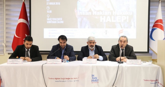 Evrensel hukukun Suriye’de nasıl uygulandığı üzerine konuşan Uluslararası Hak İhlalleri İzleme Merkezi Hukuk Direktörü Av. Mustafa Demiral, küresel savaşların önüne geçmek için ve dünyada barış, adalet ve güvenliği sağlamak üzere kurulan BM’nin uygulamada ne denli eksik kaldığına dikkat çekti. Devletlerin rızaî olarak imzaladıkları uluslararası hukuk anlaşmalarında, kuralları ihlal edenlere yaptırım uygulayacak bir üst otorite olmamasının Suriye’deki mevcut durumun yaşanmasına sebep olduğunu söyleyen Demiral, küresel bir lidere acil ihtiyaç olduğunu aktardı. BM’nin işleyişindeki düzensizlik ve siyasi aktörlerin güçlü tavrının Suriye’de işlenen insanlık suçlarının yargılanmasına engel teşkil ettiğini aktaran Demiral, BM’nin 3. dünya savaşının çıkmasına engel olamayacağını da sözlerine ekledi.
