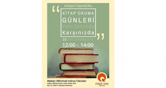Düşün Taşın Derneği'nin Kitap Okuma Günleri etkinliği 22 Ekim 2016 Cumartesi Saat: 12:00-14:00 'te başlıyor.