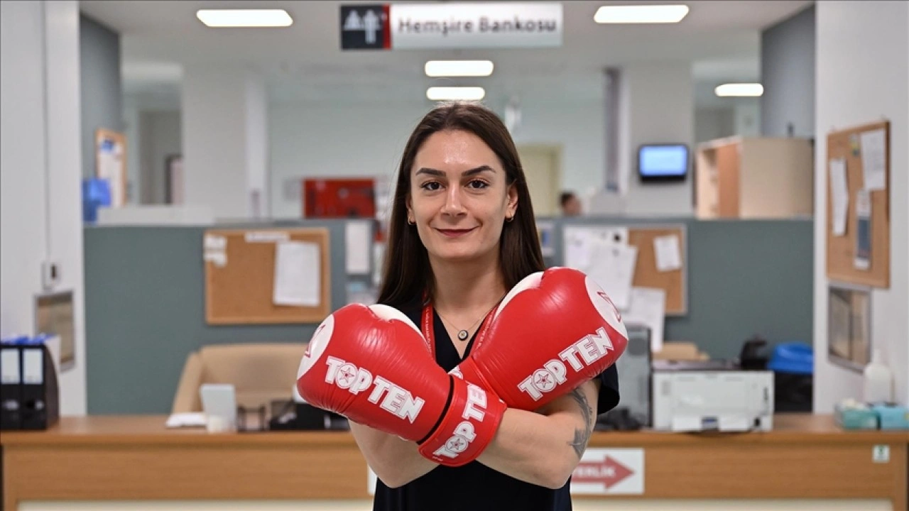 Duygu hemşire, hastalara şifa olan ellerine mesaisinin ardından boks eldivenlerini giyiyor.