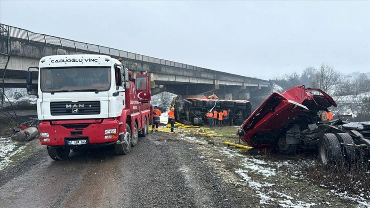 Alınan bilgiye göre, otoyolun İstanbul istikameti Sultaniye köyü mevkisinde Bayram G'nin kullandığı plakası öğrenilemeyen kara yollarına ait kar küreme aracı aynı istikamette ilerleyen Metin Ç'nin kullandığı 74 DE 080 plakalı demir ve sac yüklü tıra arkadan çarptı.