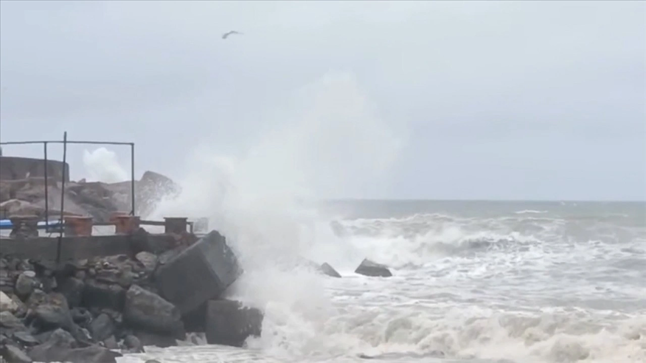 Düzce'nin Akçakoca ilçesinde kuvvetli rüzgar nedeniyle denizde dalga boyu yükseldi.
