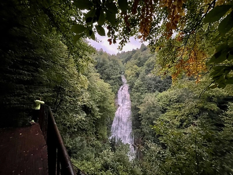 Yüksek ağaçların bulunduğu bölgede yere dökülen sarı ve kahverengi yapraklar arasında gezinti yapan misafirler, doğada temiz hava almanın keyfini de çıkardı.