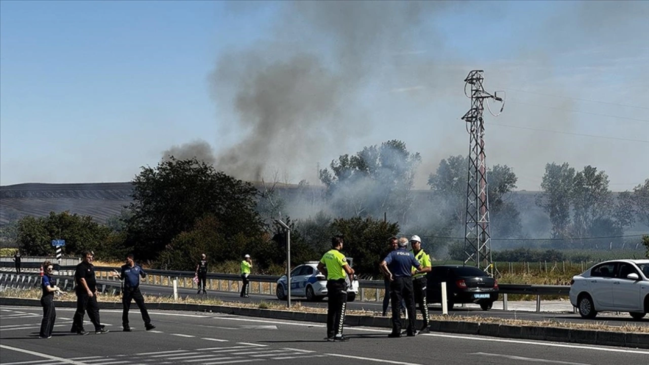 Geniş alandaki anız yangınına müdahale sürüyor.