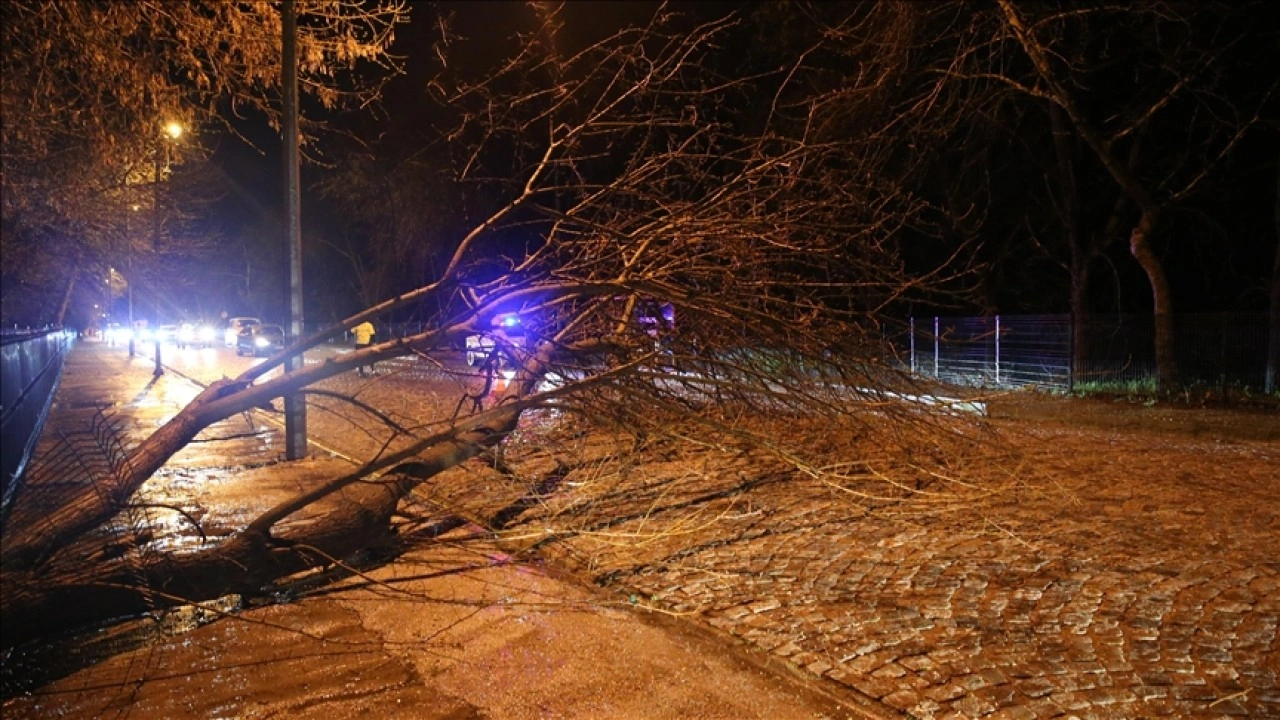 Sağanak yağış sebebiyle Kent Ormanı'ndaki bir ağaç, Lozan Caddesi'ne devrildi.