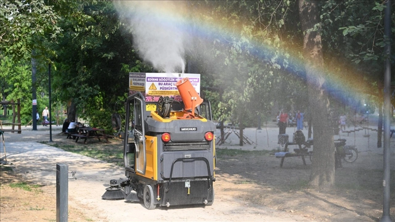 Özel donanımlı süpürme aracı yardımıyla bahçede temizlik yapılırken aynı zamanda lavanta suyu püskürtülerek ziyaretçilerin serinlemesi sağlanıyor.