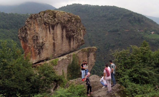Giresun Mesudiye Köyü’nün Taşhan mahallesinde bulunan iki dev kayanın, dik bir yamaçtaki fizik kurallarına aykırı duruşu nedeniyle halk arasında dolaşan efsaneler yüzünden son yıllarda turistlerin ilgi odağı haline geldi.