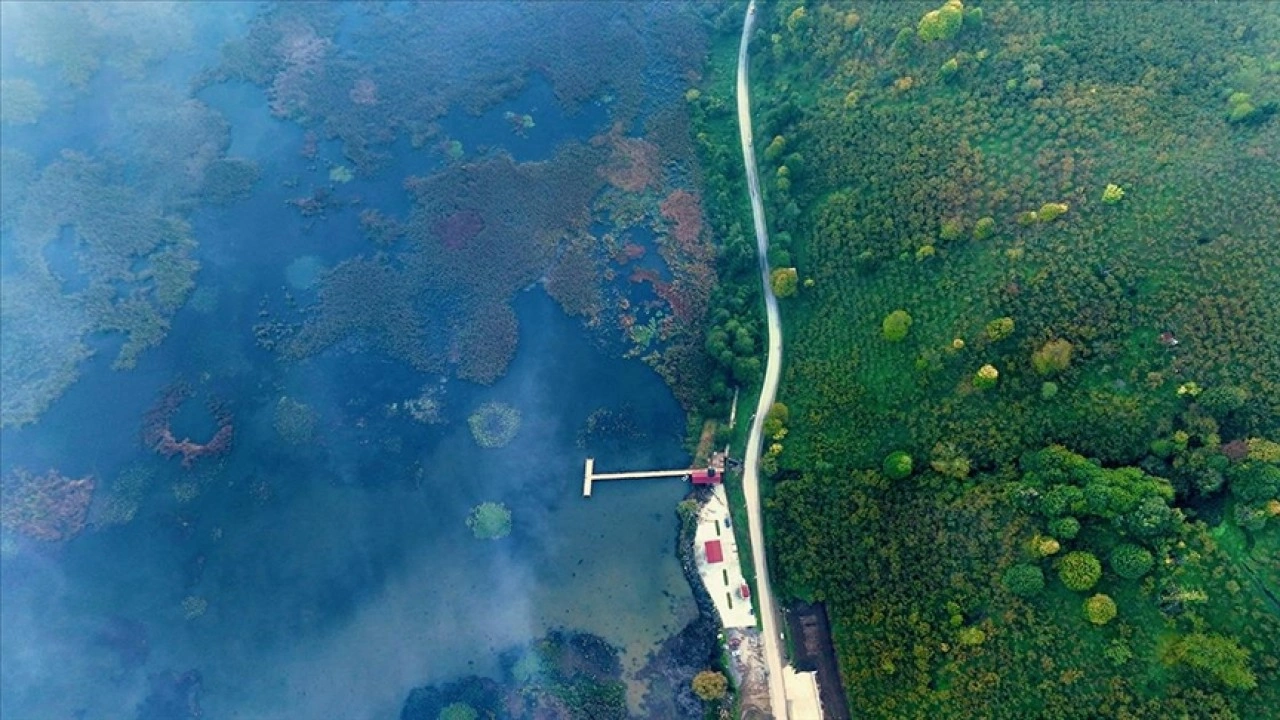 "Ulusal Öneme Haiz Sulak Alanı" içerisinde yer alan kuş cennetinin havzasındaki Gölyaka Kültür Park'ta sis etkili oldu.