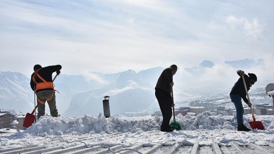 Hakkari'de yaz aylarında genellikle inşaatta çalışan bazı vatandaşlar, kışın gelmesiyle çatılardaki karı temizleyerek ailesini geçindiriyor.