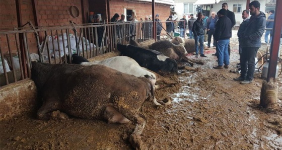Edinilen bilgiye göre, Irgıllı Mahallesinde Halit Özdemiroğlu tarafından sağım için süt makinesine bağlanan inekler, makine çalışır çalışmaz elektrik akımına kapıldı. İneklerden 4 tanesi olay anında telef olurken bir inek ölmeden önce Özdemiroğlu tarafından kesildi. İneklerin hepsinin de gebe olduğu belirtilirken yaşanan zararın yaklaşık 50 bin TL olduğu ifade edildi.