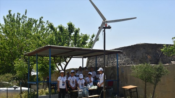 Şırnak'ın İdil ilçesinin Oyalı köyündeki öğrenciler, elektrik kesintisine karşı rüzgar türbininden elektrik üretti.