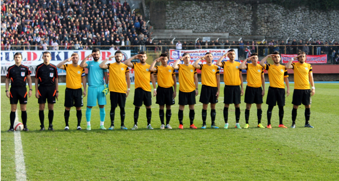 Zonguldak Kömürspor ve Tutap Şekerspor arasında oynanan ve Tutap Şekerspor’un son dakikada attığı golle 1-1 sonuçlanan maç başlamadan önce Tutap Şekersporlu futbolcuların İstiklal Marşı sırasında asker selamı vermesi yaklaşık 8 bin taraftar tarafından alkışlarla karşılandı. Van'da asker selamı yüzünden çıkan olayları protesto etmek amacıyla böyle bir eylem gerçekleştirdikleri öğrenilen Tutap Şekerspor futbolcular, Bergama Belediyespor’a yaşanan olaylardan dolayı geçmiş olsun dileklerini iletti. VAN'DA NELER YAŞANMIŞTI? Spor Toto 3. Lig 3. grupta mücadele veren Van Büyükşehir Belediyespor ile Bergama Belediyespor’un karşılaştığı ve 2-2 biten maçın 84’üncü dakikasında Bergama Belediyespor’un beraberlik golünü atan Gökhan Çetinus, takımının yedek kulübesine giderek futbolcular ve teknik yönetime asker selamı verdi. Bu hareketine sinirlenen taraftarlar ve Van Belediyesporlu futbolcular maç sonunda Gökhan Çetinus’a saldırmıştı.  İHA