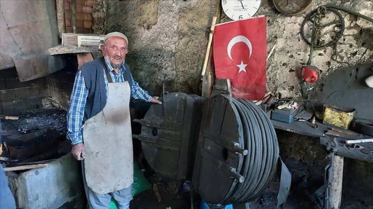 Teknolojinin olmadığı zamanlarda daha zorlu şartlarda çalıştığını vurgulayan Özdemir, "Elektrik gelmeden önce makasla demir keserdim. Elektrik geldikten sonra makası bıraktım. Burada bıçak yapardım, vatandaşa verirdim. Yapmaya da dövmeye de devam ediyorum. Makas işini de devam ettiriyorum." dedi.