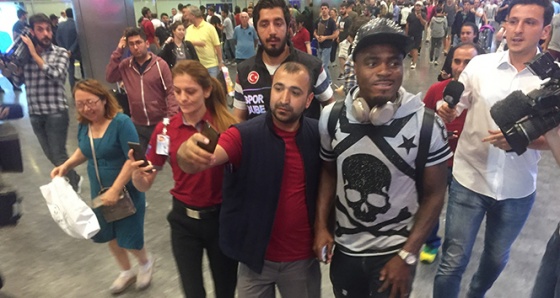 Fenerbahçe golcü futbolcusu Emenike, dün Yunan ekibi Olympiakos için sağlık kontrolünden geçen Emenike, Atatürk Havalimanı'ndan Türkiye'ye geri geldi. Emenike'yi karşılarındaki gören havaalanındaki insanlar, Nijeryalı futbolcu ile fotoğraf çektirmek için yarıştı. Golcü futbolcu, yalnız geldiği havaalanından özel araçla ayrıldı.
