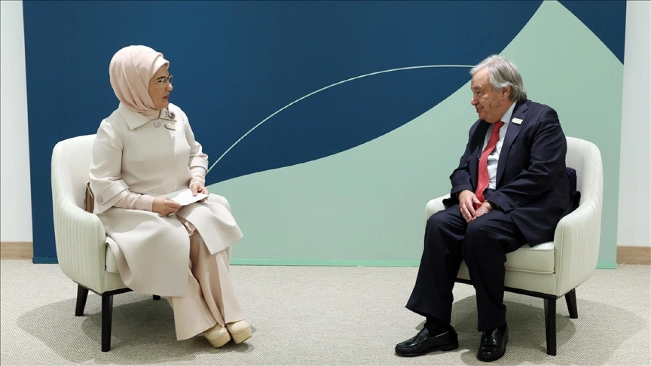 Cumhurbaşkanı Recep Tayyip Erdoğan'ın eşi Emine Erdoğan, sosyal medya hesabından yaptığı paylaşımda, Guterres ile COP29 vesilesiyle Bakü'de görüştüklerini belirtti.