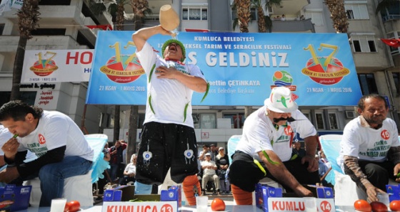 Kumluca Belediye Başkanı Hüsamettin Çetinkaya, "17. Tarım ve Seracılık Festivalinin önemli etkinliklerinden biri de acı biber yeme yarışmasıdır. Bu yarışmaya katılmak isteyen yarışmacılar sadece Kumluca değil, Kahramanmaraş, Iğdır, Diyarbakır ve çevre ilçelerden geldi. Bugün dünyanın gündemi güvenilir gıda. Bizim öncelikle bu biber yeme yarışmasında vermiş olduğumuz mesaj, biz öncelikle kendi ürettiğimizi kendimiz yiyoruz. Biz kendi ürettiğimize güveniyoruz, güvenilir gıda üretiyoruz. Bunu da Kumluca Cumhuriyet Meydanından tüm dünyaya ilan ediyoruz" dedi.