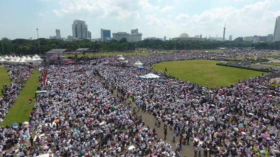 Endonezya’nın başkenti Cakarta’da Özgür Beytülmakdis EndonezyaKoalisyonu öncülüğünde ülkenin özgürlük simgesi olan Monas alanında düzenlenen gösteriye binlerce kişi katıldı.