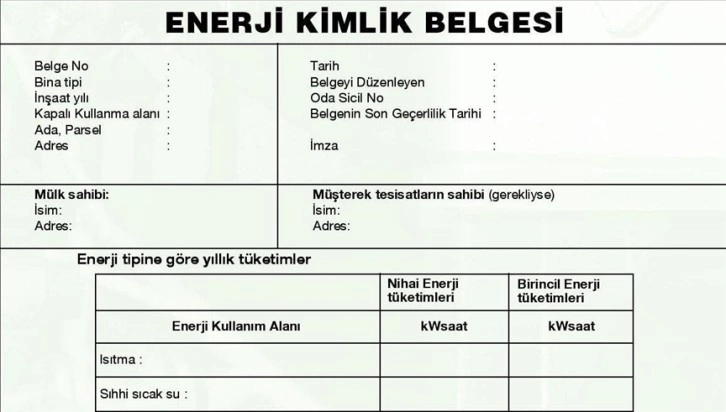 AA muhabirinin Çevre, Şehircilik ve İklim Değişikliği Bakanlığından aldığı bilgiye göre, Enerji Kimlik Belgesi, binanın enerji ihtiyacı ve enerji tüketim sınıflandırması, yalıtım özellikleri ve ısıtma veya soğutma sistemlerinin verimiyle ilgili bilgileri içeriyor.