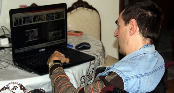 Samsun’da 42 yaşındaki engelli Vahit Sonay Yazgan, tek parmağıyla günde 15 cümle yazarak 4. kitabını çıkartıyor.