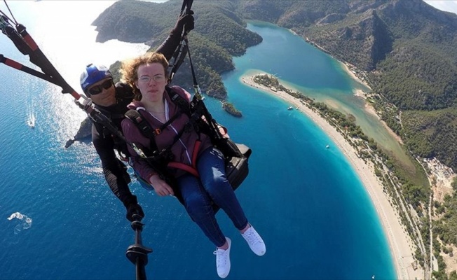 MUĞLA (AA)- Yamaç paraşütüyle uçuş yapma hayali için yakınlarıyla ilçeye gelen doğuştan bedensel engelli 19 yaşındaki Spencer, yamaç paraşütü pilotu Mustafa Kemal Öztürk ile tandem (ikili) uçuş için Ölüdeniz Mahallesi'ndeki Babadağ'a çıktı. Diğer pilotların da yardımıyla hazırlıklarını tamamlayan ikili, bin 700 metrelik pistten uçuşunu gerçekleştirdi. Yaklaşık 30 dakika gökyüzünden Ölüdeniz manzarasını izleyen Rosa Spencer ve Öztürk, Belcekız Plajı'ndaki piste indi.