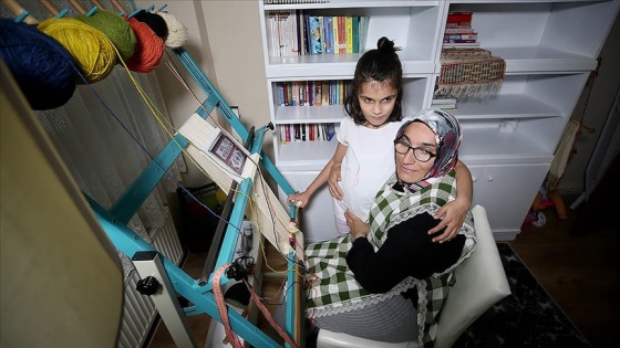 Düzce'de zihinsel engelli kızını yalnız bırakmamak için bir odasını atölyeye dönüştürdüğü evinde halı üreten Kadriye Polat Kıygıl, ürünleri satarak aile bütçesine katkıda bulunuyor.