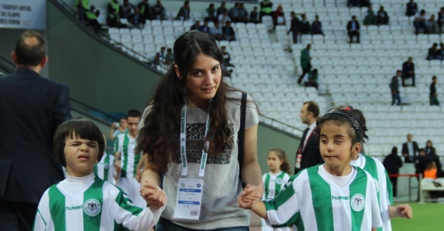 Görme, zihinsel ve işitme engelli öğrenciler Torku Konyaspor-Kasımpaşa maçının devre arasında “Konyaspor Geliyor Bak” şarkısını işaret dilinde söyledi.